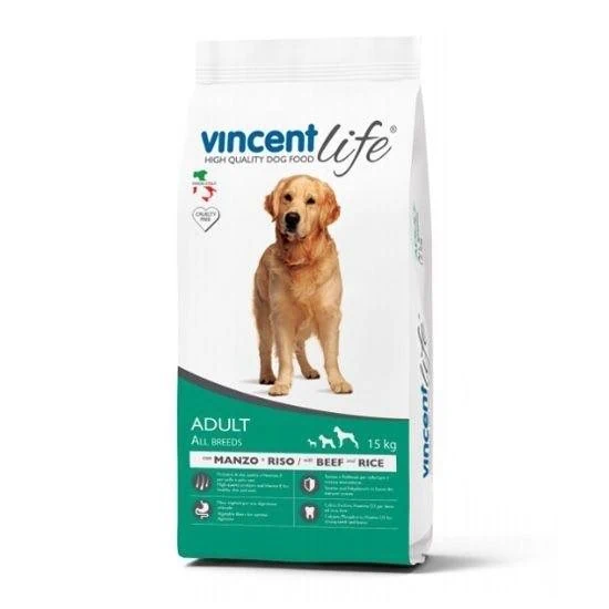 מזון לכלבים וינסנט לייף בקר לכלב בוגר 15 ק"ג